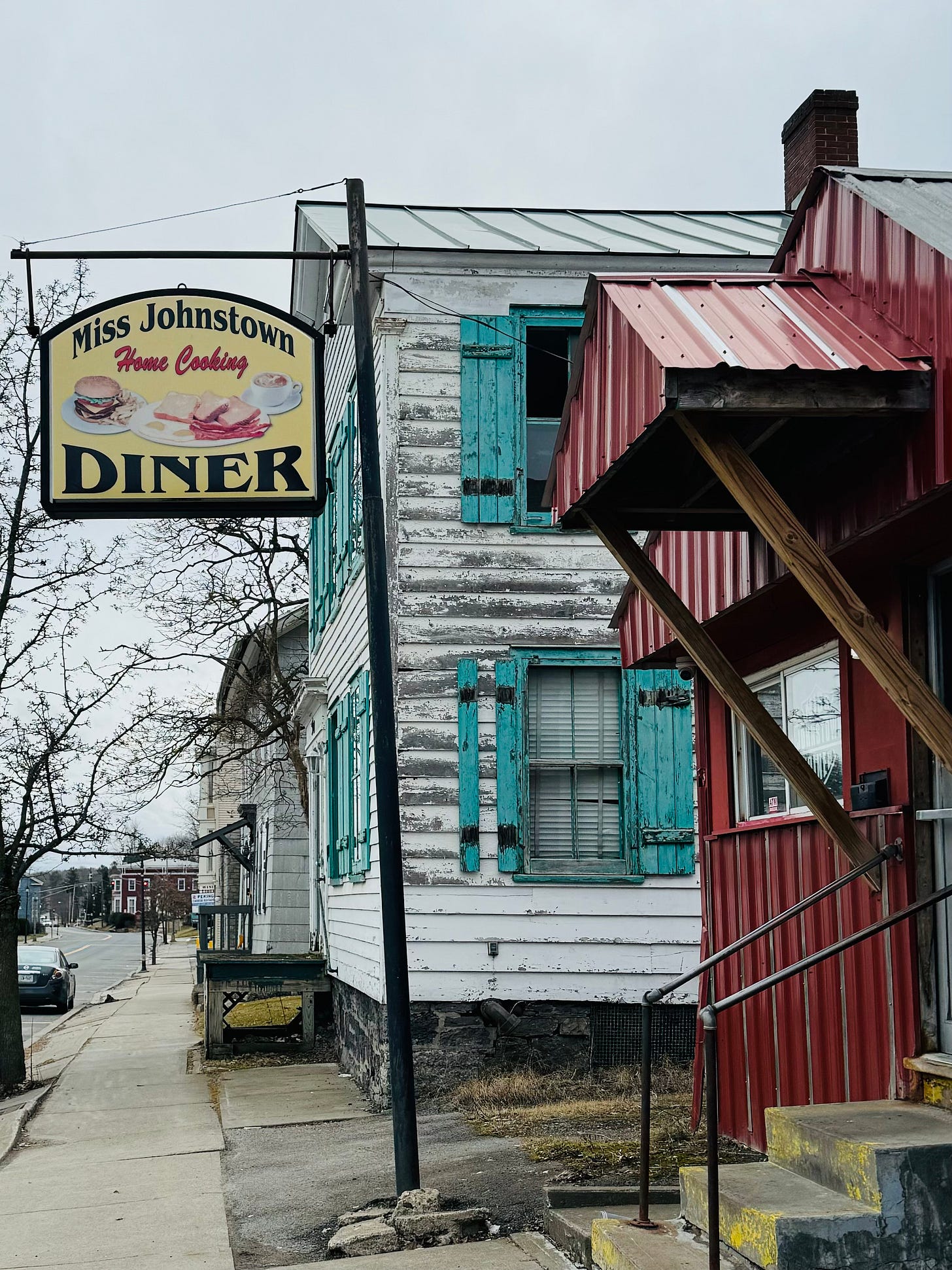 The morning of the memorial, I walked through Johnstown, New York on that Saturday to look at everything, and I stopped in “Miss Johnstown’s Diner” to have coffee and oatmeal. My waiter was a skinny 14-year-old boy, greeting everybody who came through the door, and taking orders from the cook who was frying orders of bacon and eggs. He wore a camo baseball cap.