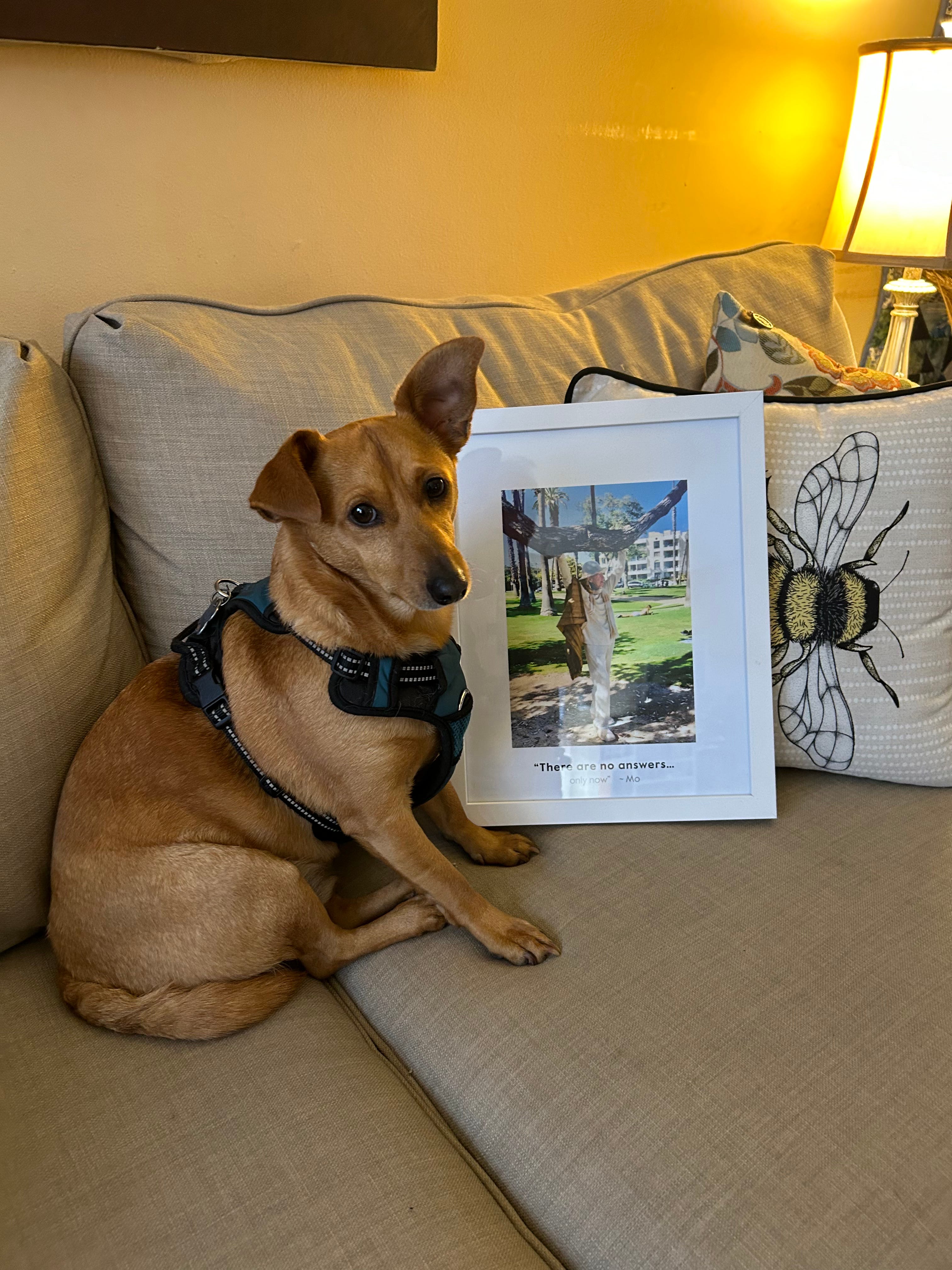 One of the last things she told me was, “You know his freedom matters more to him than anything.” In her “Mo” way, she reminded me to let go and give him the dignity to live his life on his terms - something so hard to do but what choice did I have? I found tremendous comfort in taking deep slow breaths and turning toward the ocean on walks with Mo instead of searching places where he might be, begging him to see reason and come home.